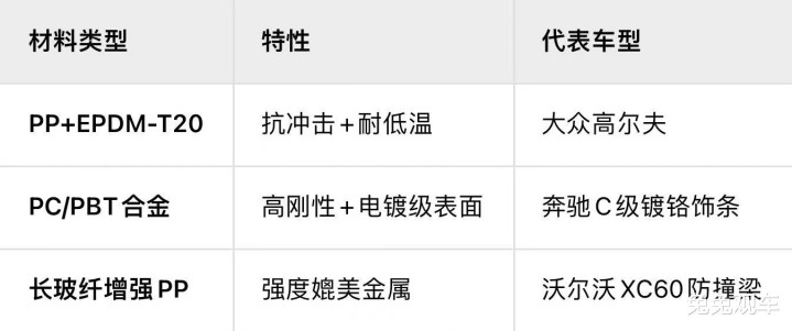 一辆塑料保险杠比金属轻3-5公斤。别小看这点重量!